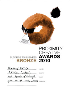 Depois da conquista de um Leader Echo na edição do ano passado, a Proximity Portugal tem a possibilidade de voltar a ser premiada nos Echo Awards 2010, contando para isso com 3 trabalhos na shortlist: Os Diários de Viagem de John Smith (Travel & Hospitality), É invejável (Business Consumer Services) e Agora Somos Vermelhos (Business Consumer Services).
